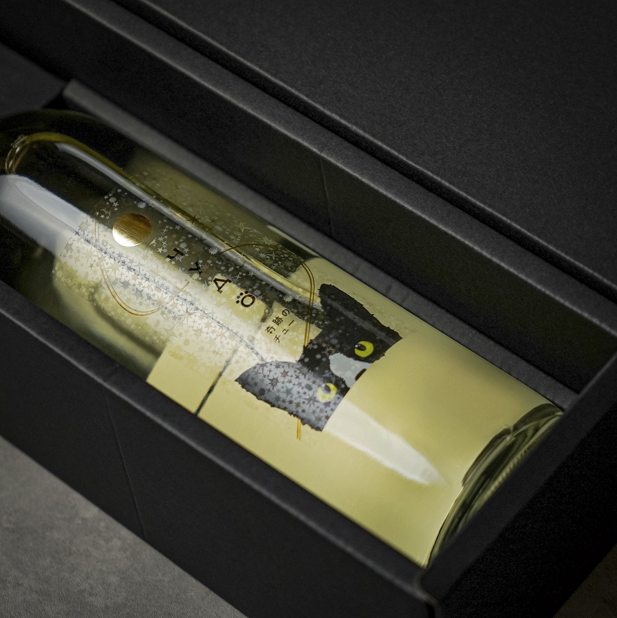 猫ラベルのお酒UNO専用ギフトボックスに入れて、お届けいたします。